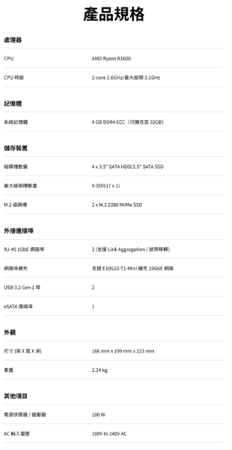 Synology 群暉 科技 DiskStation DS923+ (4Bay/AMD/4GB) NAS 網路儲存伺服器